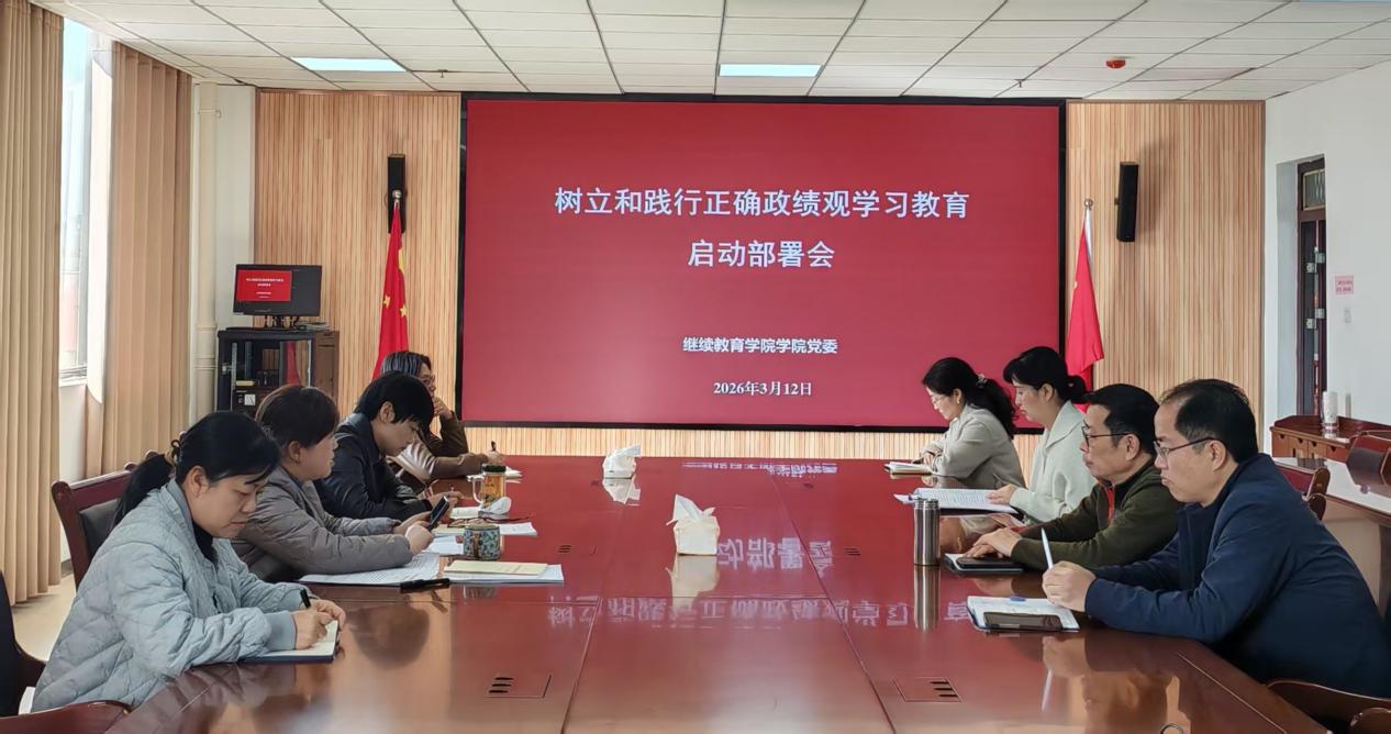 3月12日上午,继续教育学院党委在610会议室召开会议,部署启动学院树立和践行正确政绩观学习教育工作。学院党委书记王琪主持会议,党委班子成员参加会议,党支部书记列席会议。