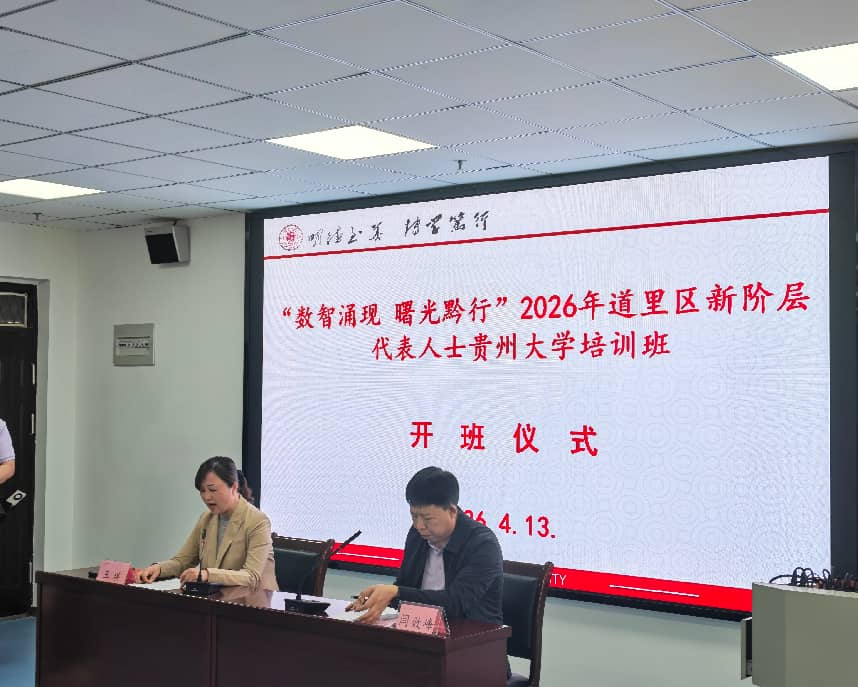 为加强新的社会阶层人士思想政治引领,提升数字素养与履职能力,受哈尔滨市道里区委统战部的委托,由贵州大学继续教育学院承办的“数智涌现 曙光黔行”2026年道里区新阶层代表人士贵州大学培训班,于4月12日至14日在贵州大学圆满举办。为期3天的培训紧扣主题、内容丰富,采取理论教学+实践教学相结合模式,让学员在深学细悟中凝聚共识、在实地研学中启迪思路。